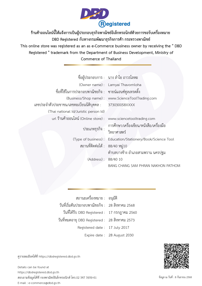 จัดจำหน่าย ปลีก-ส่ง อุปกรณ์วิทยาศาสตร์ เครื่องแก้ว อุปกรณ์ทดลอง วิจัย อุปกรณ์ฟิสิกส์ วัตถุดิบงานฝีมือ บรรจุภัณฑ์ ชุดกิจกรรมสื่อการสอน ชุดกิจกรรมเสริมทักษะทางวิทยาศาสตร์ และสินค้าอื่นๆหลากหลายชนิด
